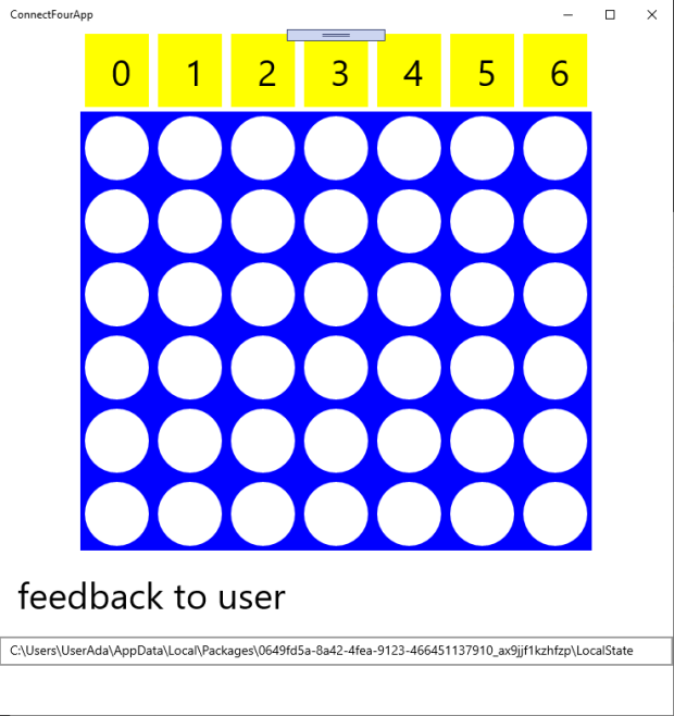 Klicka på en siffra (knapp) för att släppa ner en bricka. Logga varje drag till fil.