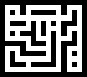 Generera labytint samt spara till svartvit png. Exempel på sparad labyrint i figuren nedan. Förstorad 10 gånger.