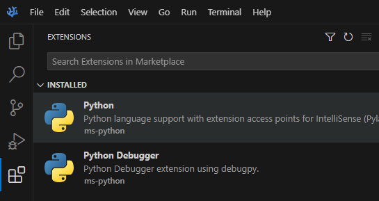 Starta VSCodium. Se figuren nedan hur du lägger till tillägget Python. Klicka på install.